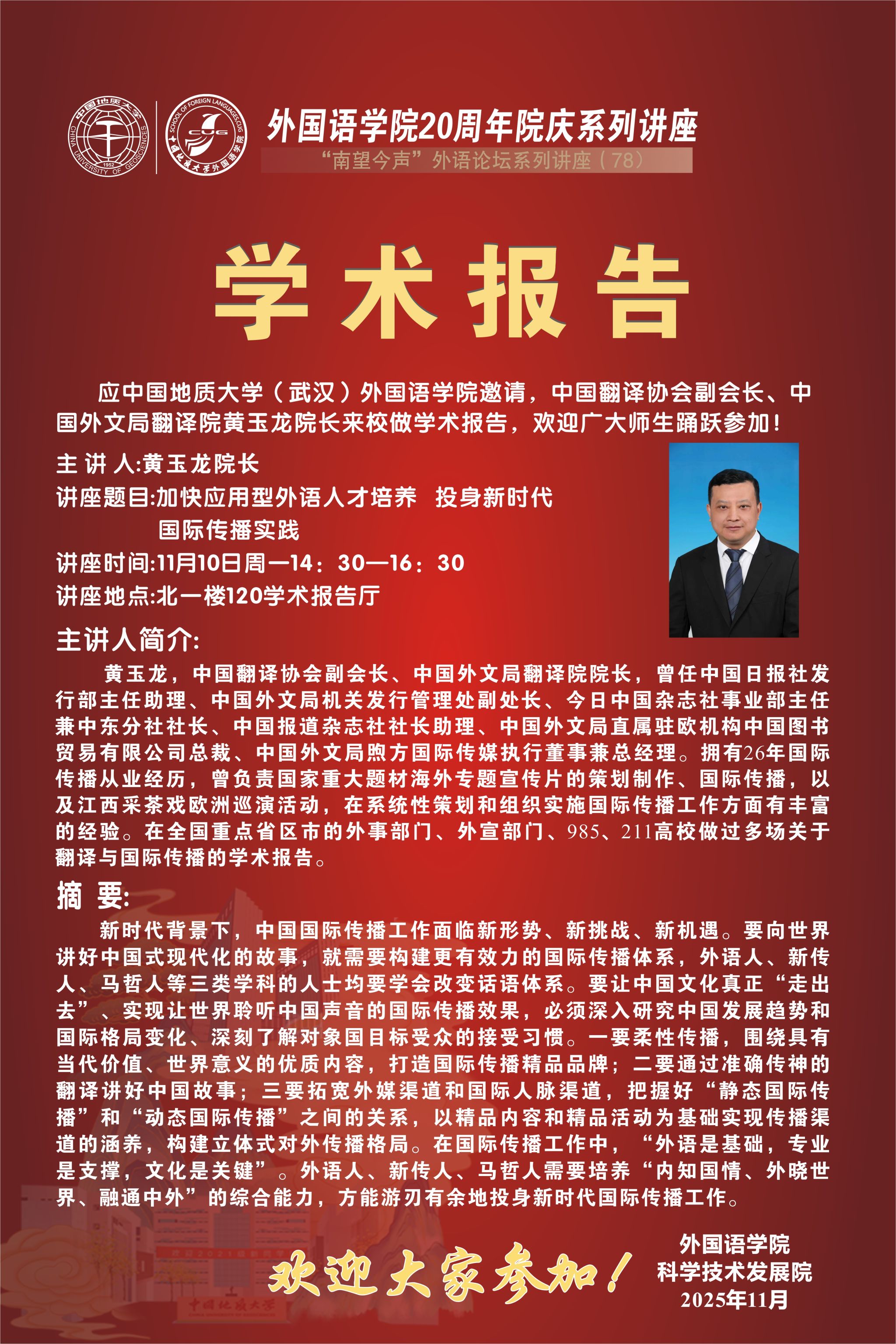 外国语学院20周年院庆系列讲座暨“南望今声”外语论坛系列讲座(78)通知
