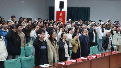 为深入学习贯彻党的二十届四中全会精神,落实习近平总书记关于青年工作的重要思想,11月3日晚,外国语学院2025-2026学年“语翼”团校开班仪式暨团校第一课在北一楼报告厅举行。校团委副书记刘明辉、外国语学院党委副书记余尚蔚,分团委书记邹蔚鹤、辅导员黎颖、兼职辅导员单丹及189名学员参加。邹蔚鹤主持开班仪式。