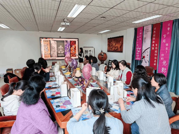(通讯员: 张云霞)为庆祝第116个“三八”国际劳动妇女节,丰富女教职工的文化生活,感受非遗文化的独特魅力,3月12日下午,外国语学院分工会在北一楼举办了以“锦绣前程阔 一马当先行”为主题的宋锦非遗手作体验活动。