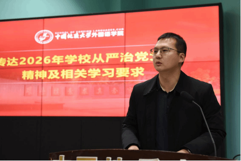 要强化政治引领,筑牢党建“风向标”。要坚持把党的政治建设摆在首位,巩固拓展主题教育成果,推动党建与业务深度融合,以高质量党建引领学院高质量发展。要深化铸魂育人,把稳思政“定盘星”。要将立德树人根本任务贯穿教育教学全过程,将AI赋能外语教改落地落实,将教学效能从“应试转应用”,守好课堂主阵地,引导学生坚定理想信念、厚植家国情怀。要夯实发展根基,提升学科“硬实力”。探索学科向区域国别研究转型的路径,凝练学科方向,强化特色优势,不断提升学科核心竞争力和影响力。